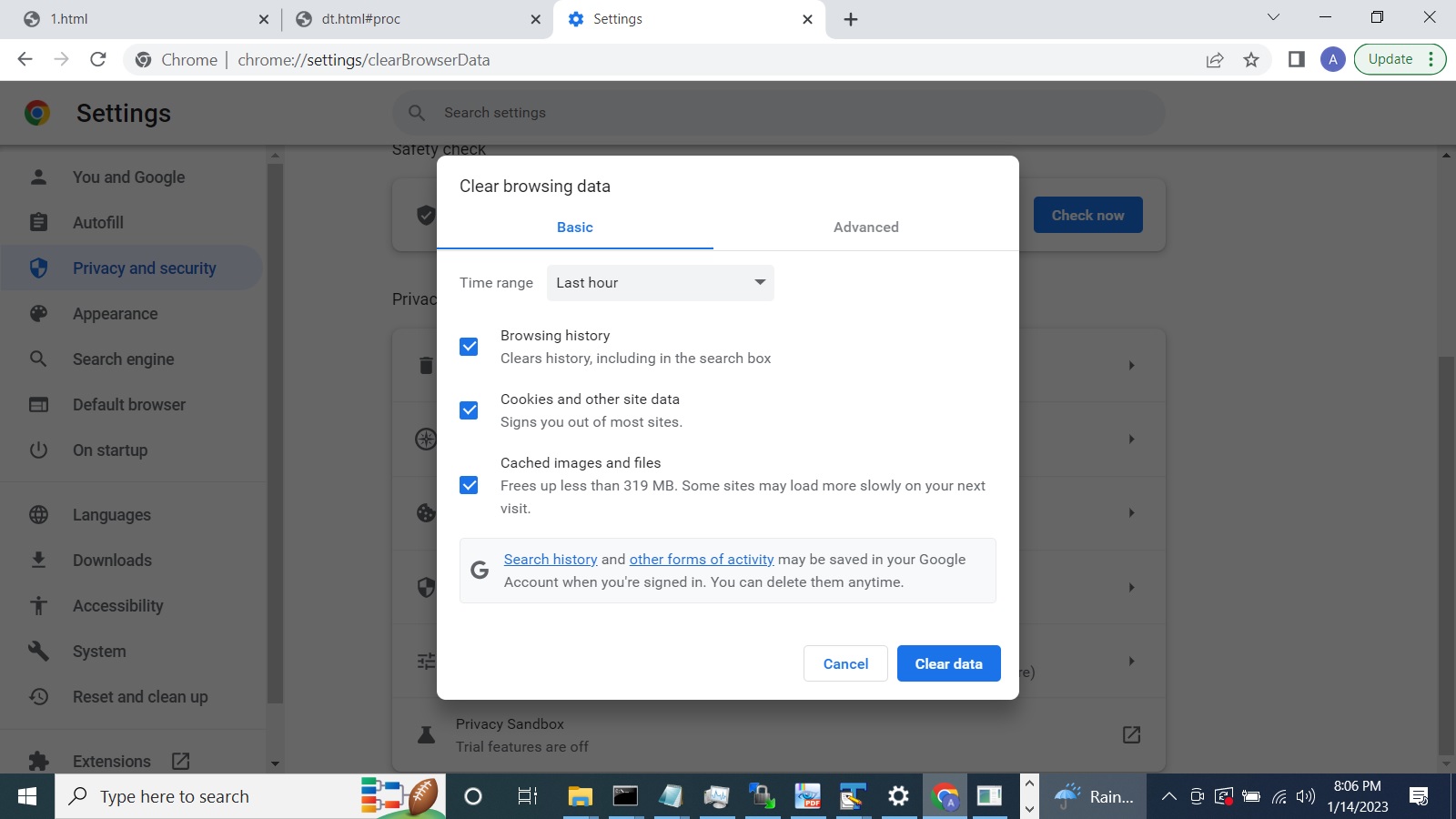 A cache is an area where we can store information that we obtained from the network, database , calculation etc. If a client requests that information then the application can first look in the cache and if the information exists then hand it back to the client. This speeds up the general process. There are considerations such as when the data should be considered stale and so on. Browsers normally use cache. Below is the setting snapshot from Chrome browser.