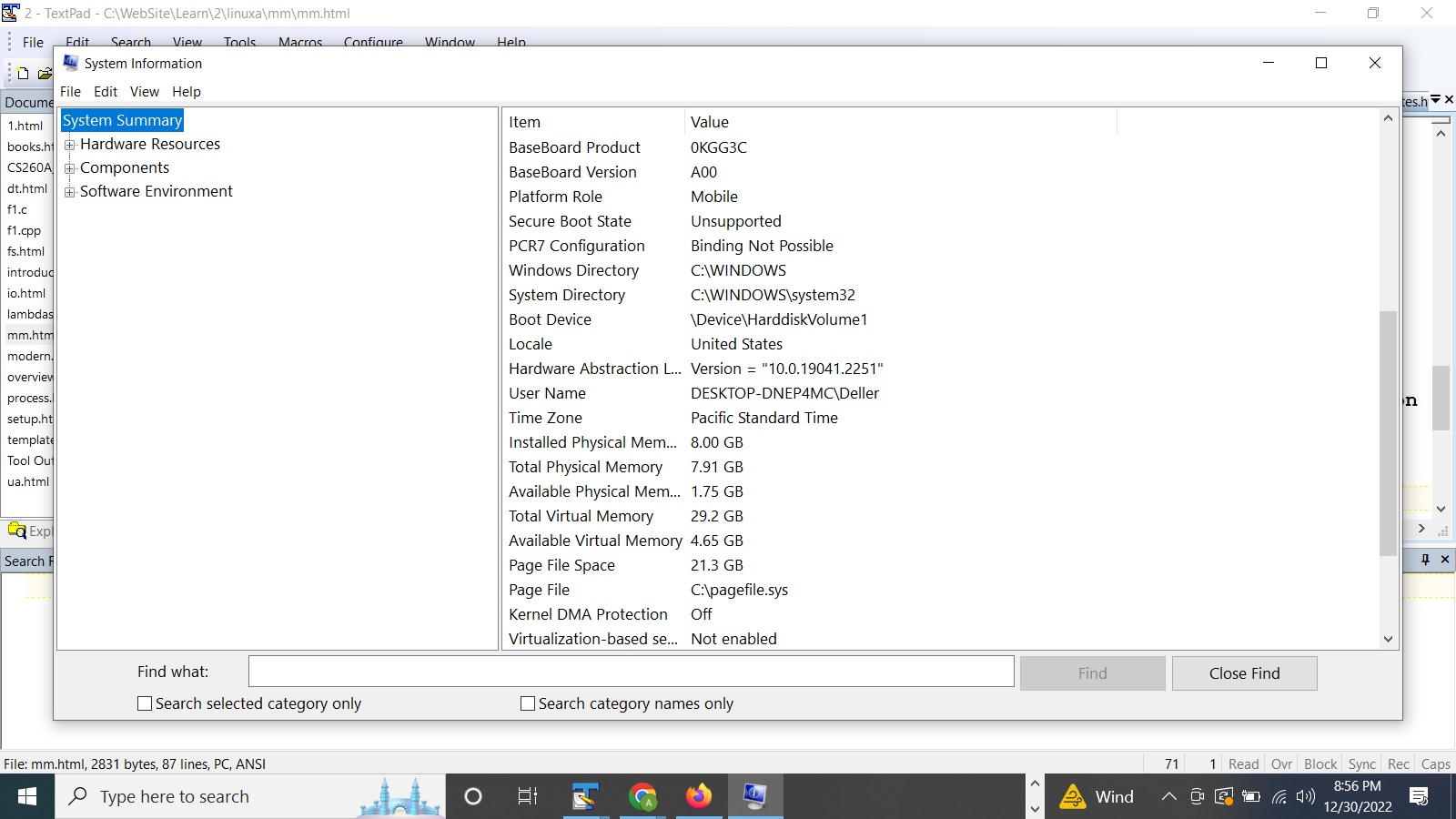 We see in the above image that the actual physical memory is 8 Gb and the space reserved