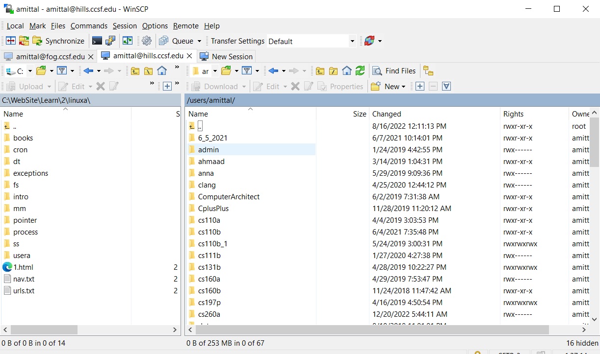 $ ssh amittal@hills.ccsf.edu amittal@hills.ccsf.edu's password: ********************************************************** * W A R N I N G ! * * *The same procedure can be followed from a Unix box.