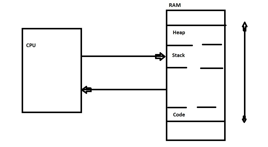 When a program is run the CPU will fetch an instruction from the RAM and process it and then fetch another instruction from the RAM and process it . Complications arise when there is a function to be called.