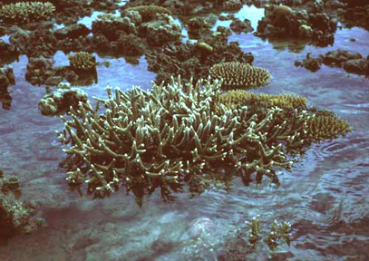 Staghorn coral in coral flats exposed during low tide