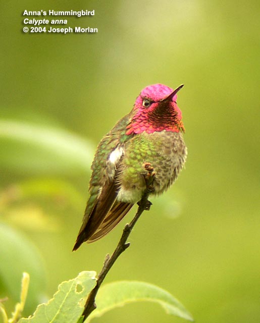 Anna's Hummingbird (Calypte anna) 10 April 2004 at Lake Merced, San Francisco, CA Photo © 2004 Joseph Morlan