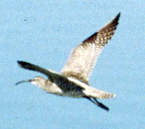 Whimbrel of the Asian race, Numenius phaeopus variegatus at China Lake, Kern County, 9-16 June, 1999. First photos of this race in California. There are now five records away from Alaska of this race as follows: 16 May 1987 in Ocean Shores, Washington (Paulson 1993); 25 September 1985 at Clatsop Beach, Oregon (Paulson 1993); and from California: 29 October-1 November 1981 in Humboldt Co. (AB 36:213), 4-21 September 1987 San Mateo Co. (FN 52:120), and this bird. Photos © 1999 Bob Steele