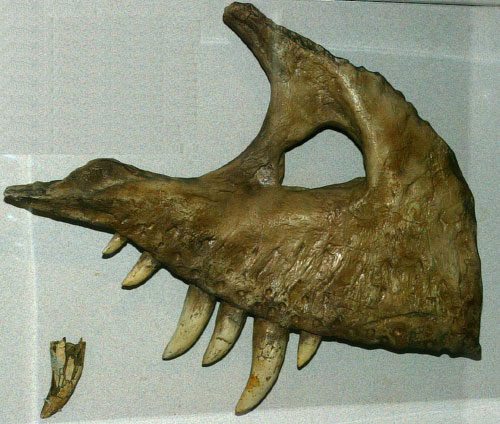 is known from only seven fossil skeletons. It had powerful hind legs and jaws, and long, serrated teeth -- which sliced through flesh like steak knives. This therapod was a fierce predator, as well as a scavenger.