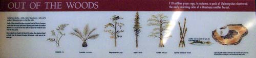 ![]() 110 million years ago, in autumn, a pack of Deinonychus shattered the early morning calm of a Montana conifer forest. Startled forest dwellers -- include a herd of Tenontosaurus -- look on as the predatory Deinonychus poise to attack their victim. Fossils of these animals have been excavated from the Cloverly formation, a rock series that covers north-central Wyoming and extends into southern Montana. It is one of the few areas with well-preserved vertebrate fossils from this time period. Since no plants were found in the Cloverly Formation, these plants are based on fossils from the Kootenai Formation of Montana, a rock series of the same age.