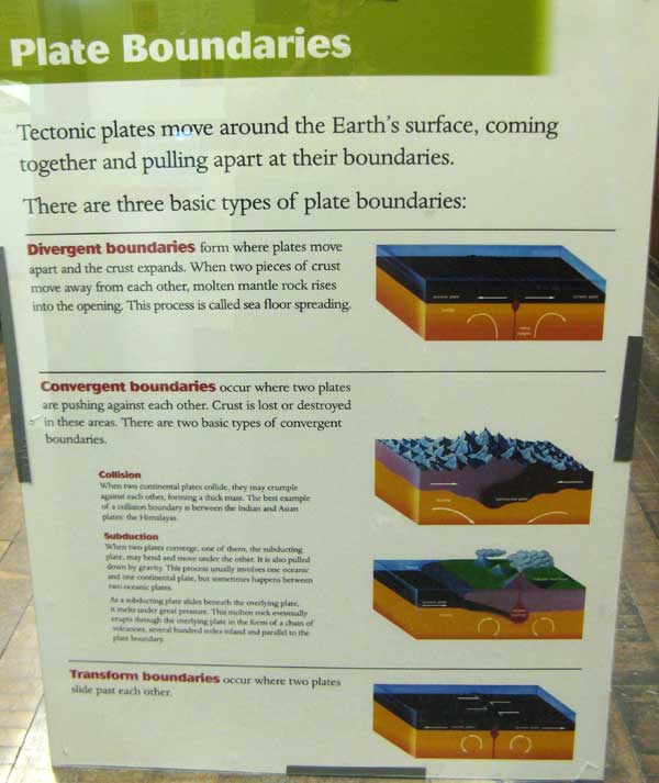 | Tectonic plates move around the Earth's surface, coming together and pulling apart at their boundaries.